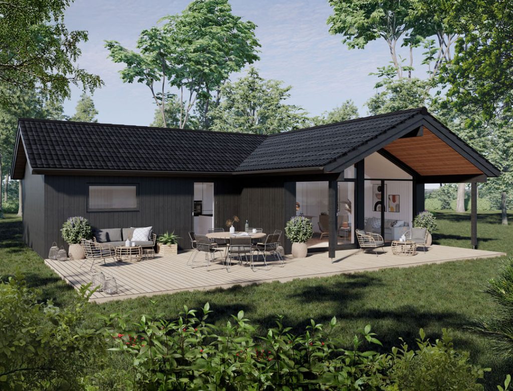 Nova 136/120 er et moderne og indbydende vinkelhus med fire lyse værelser, to flotte badeværelser samt egen sauna og spabad. Det åbne køkken ligger i naturlig forlængelse af stuen og spisestuen, hvor store vinduer og dobbeltdøre giver masser af lys og direkte adgang til terrassen. En perfekt planløsning til både familiehygge og feriedage i afslappende omgivelser.